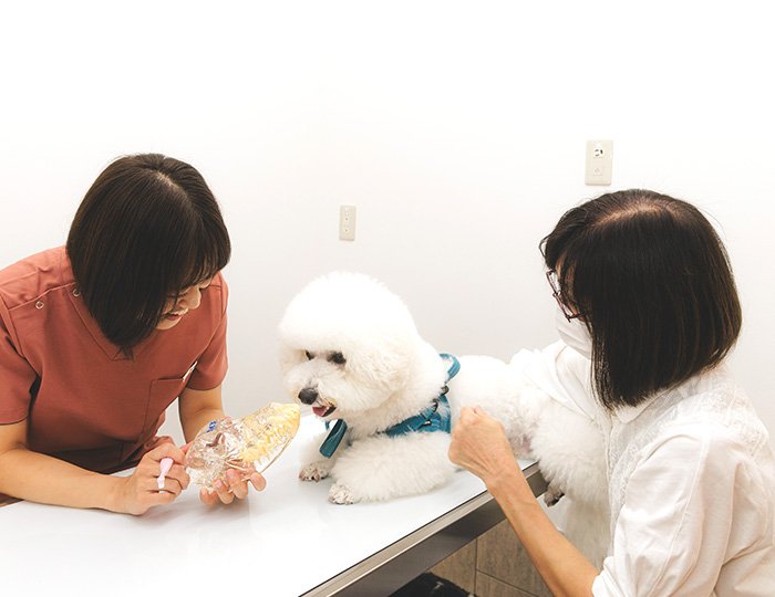 そのために、最新の医療や技術を学び実践し、各分野の専門家と連携していくことはもちろんながら、ご家族とよく相談しながら、1頭1頭に合わせたその子その子の幸せな生活を叶えるための、丁寧な診療を心がけています。